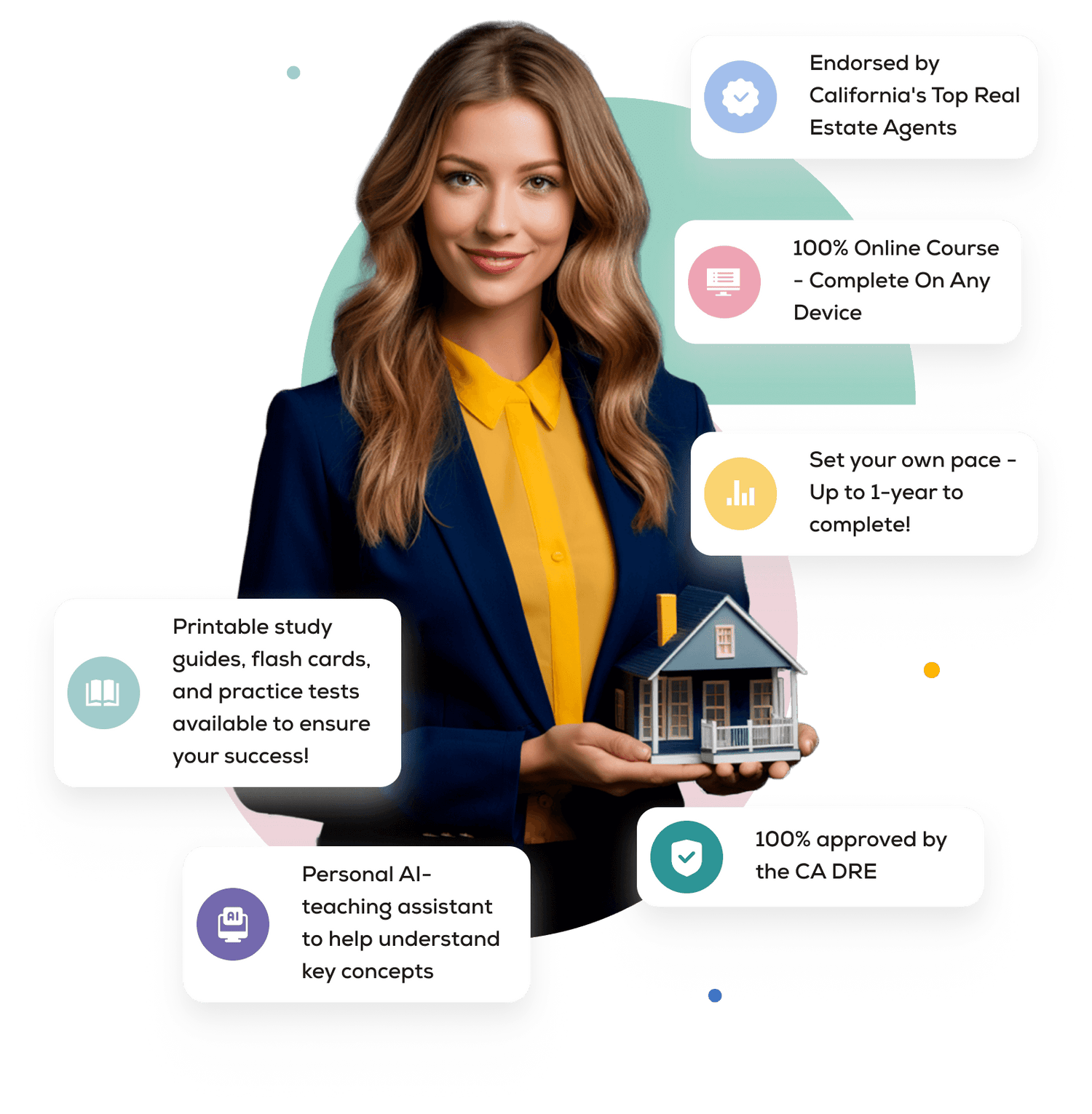 Premier Schools is accredited by the California Department of Real Estate (DRE) to provide you with the three 45-hour courses required for all prospective real estate license holders. These California online real estate courses include: